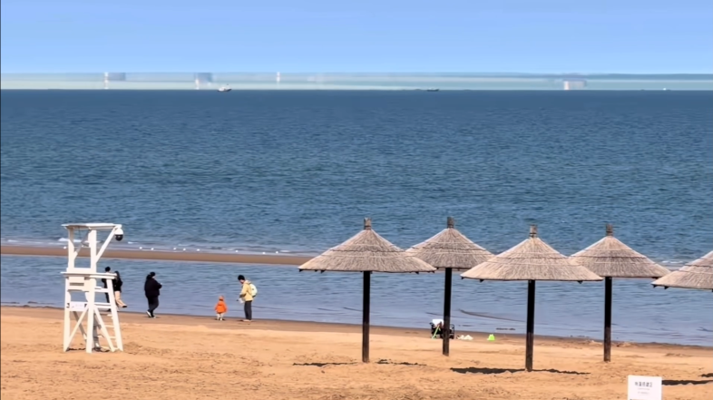 此外,海市蜃楼的形成还离不开“投影源”。也就是说,远处必须存在可以被折射的真实目标。对于秦皇岛来说,这一点同样具备优势。其对岸方向分布着辽东半岛及周边沿海区域,海上又是重要航运通道,大量船只、港口设施、沿海建筑,都可能成为蜃景的来源。在特定的光学条件下,这些原本分散的目标,会被压缩、叠加甚至重复映射,最终呈现出类似“城市天际线”的效果。这也是为什么很多目击者会觉得画面中既像楼房,又像桥梁或柱状结构,因为那其实是多个不同目标被“拼接”后的结果。
