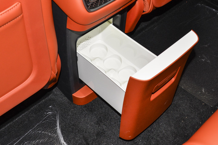 中控台大面积软包包裹,摸上去细腻柔软,缝线整齐,没有多余线头,细节处理很到位。两个刚需配置必须夸:零重力尊享副驾,加热、通风全标配,老人、爱人坐车久了,调至人体工学角度,比家里沙发还舒服;中控下方的宽温域车载冷暖箱,夏天能冰饮料,冬天能加热牛奶、饭菜,出门露营、带孩子放学,都特别实用。