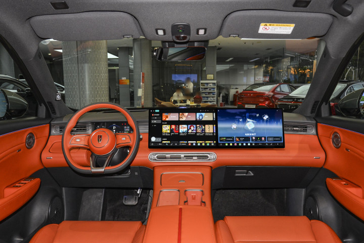 全系标配15.6+15.6吋2.5K双联屏,加上仪表屏和AR-HUD,四屏联动视觉效果好,屏幕显示细腻,触控灵敏,操作不卡顿。核心芯片是高通8295P,搭配红旗自研“灵犀”车机系统,语音交互响应不到1秒,连续对话不用重复唤醒,开车时说一句“开空调、调风量、导航去高铁站”,一次性就能完成,不用低头操作,更安全。30吋AR-HUD亮度12000尼特,大白天也能看清导航、车速,不用频繁低头看屏幕,安全性拉满。