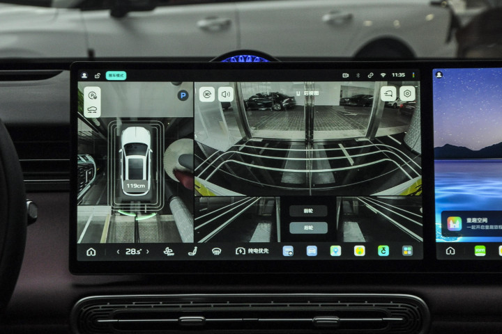 后备箱表现更是惊喜,常规容积503L,放3个28寸行李箱没问题,婴儿车、露营装备都能轻松装下;地板下方还有49L隐藏空间,放充电枪、工具,不占用常规后备箱,收纳更整洁。后排座椅放倒后,容积能拓展到1977L,铺个床垫就能当床,周末露营、拉大件物品,都能应对,家用实用性拉满。